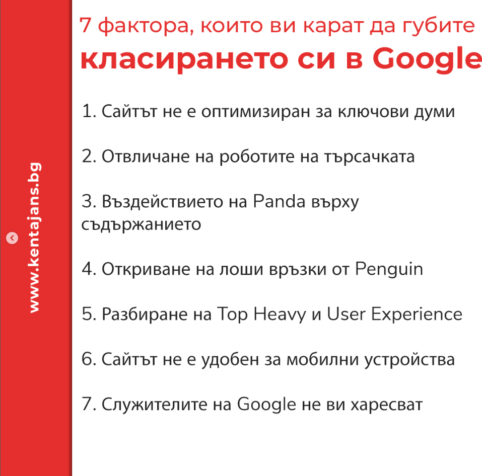 7 Фактора, Които ви Карат да Губите Класирането си в Google
