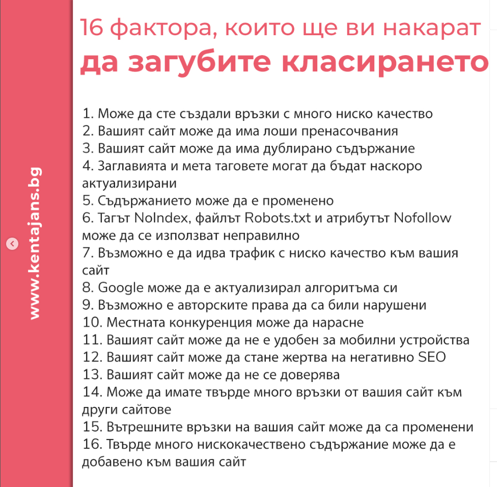За Повече Информация - 16 фактора, които ще ви накарат да загубите класирането